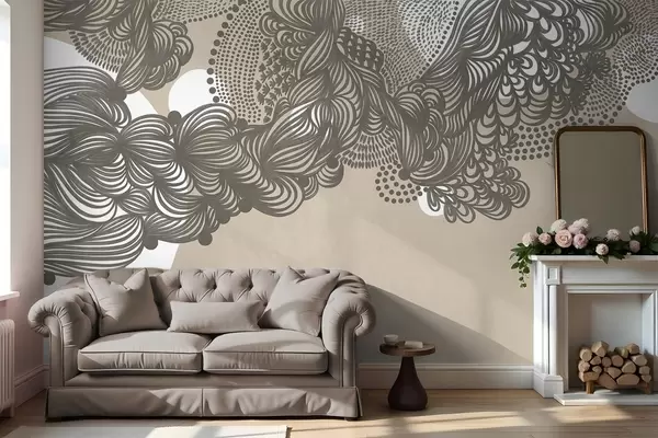 Fototapet Design abstract texturat pe fond bej, cu linii complexe și texturi punctate Nr. w09621