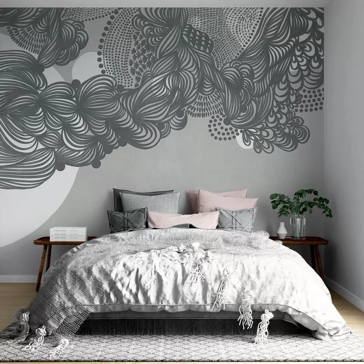 Fototapet Design abstract texturat pe fundal gri, cu linii complexe și texturi punctate Nr. w09621v1