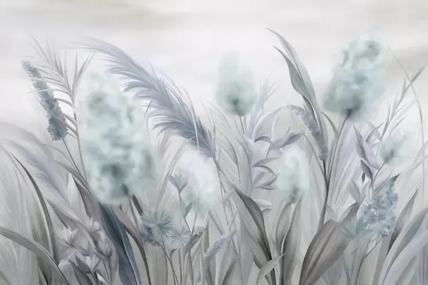 Fototapet Iarbă pampas roz și bej și alte flori uscate, cu un cer moale și încețoșat în fundal Nr. w09635