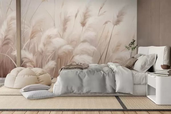 Fototapet Iarbă pampas înaltă, texturată, în tonuri neutre, calde și delicate, cu un fundal estompat și luminos. Nr. w09637