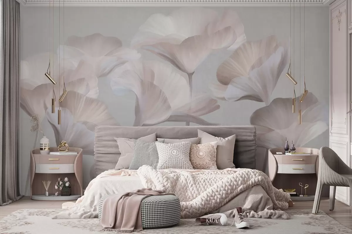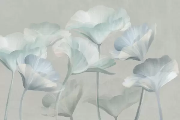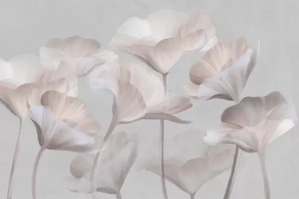Fototapet Flori de lotus translucide, de culoare piersică pal, cu textură și petale delicate, pe un fundal gri discret Nr. w09640