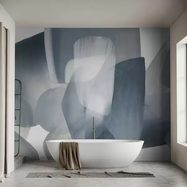 Fototapet Forme abstracte texturate în culori discrete de albastru și gri, cu margini moi și straturi suprapuse Nr. w09642v1