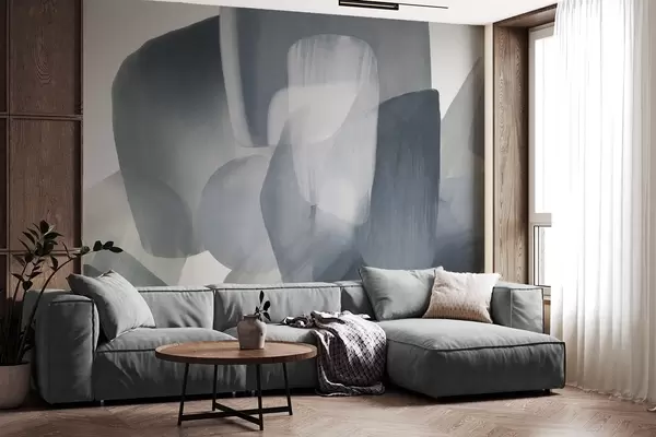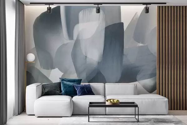 Fototapet Forme abstracte texturate în culori discrete de albastru și gri, cu margini moi și straturi suprapuse Nr. w09642v1