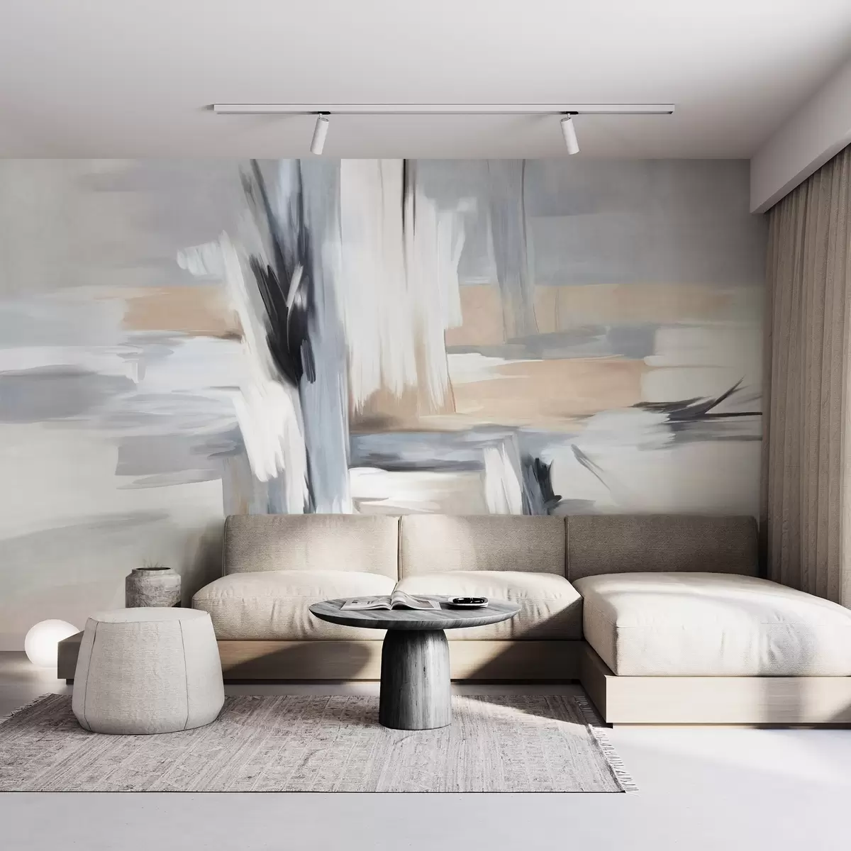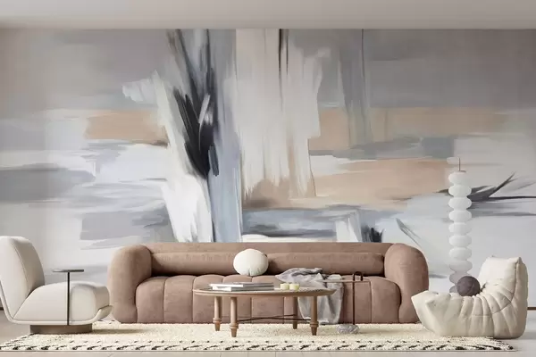 Fototapet Stil pictural abstract texturat, cu tușe de pensulă în nuanțe de alb, gri și bej Nr. w09651