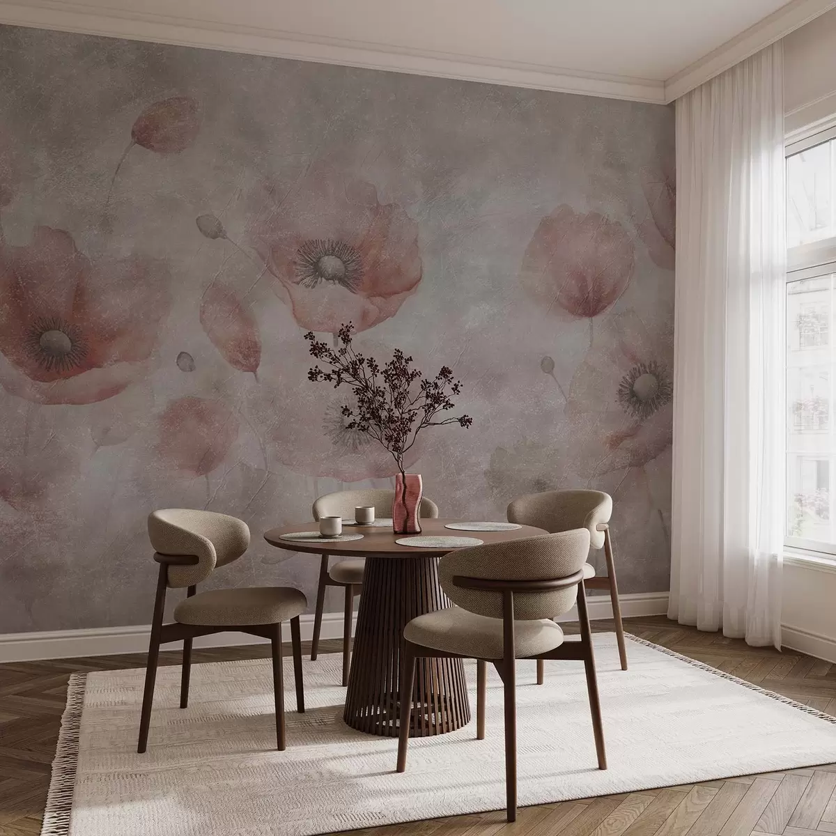 Fototapet Flori mari de mac pe un perete cu efect antic Nr. w09686