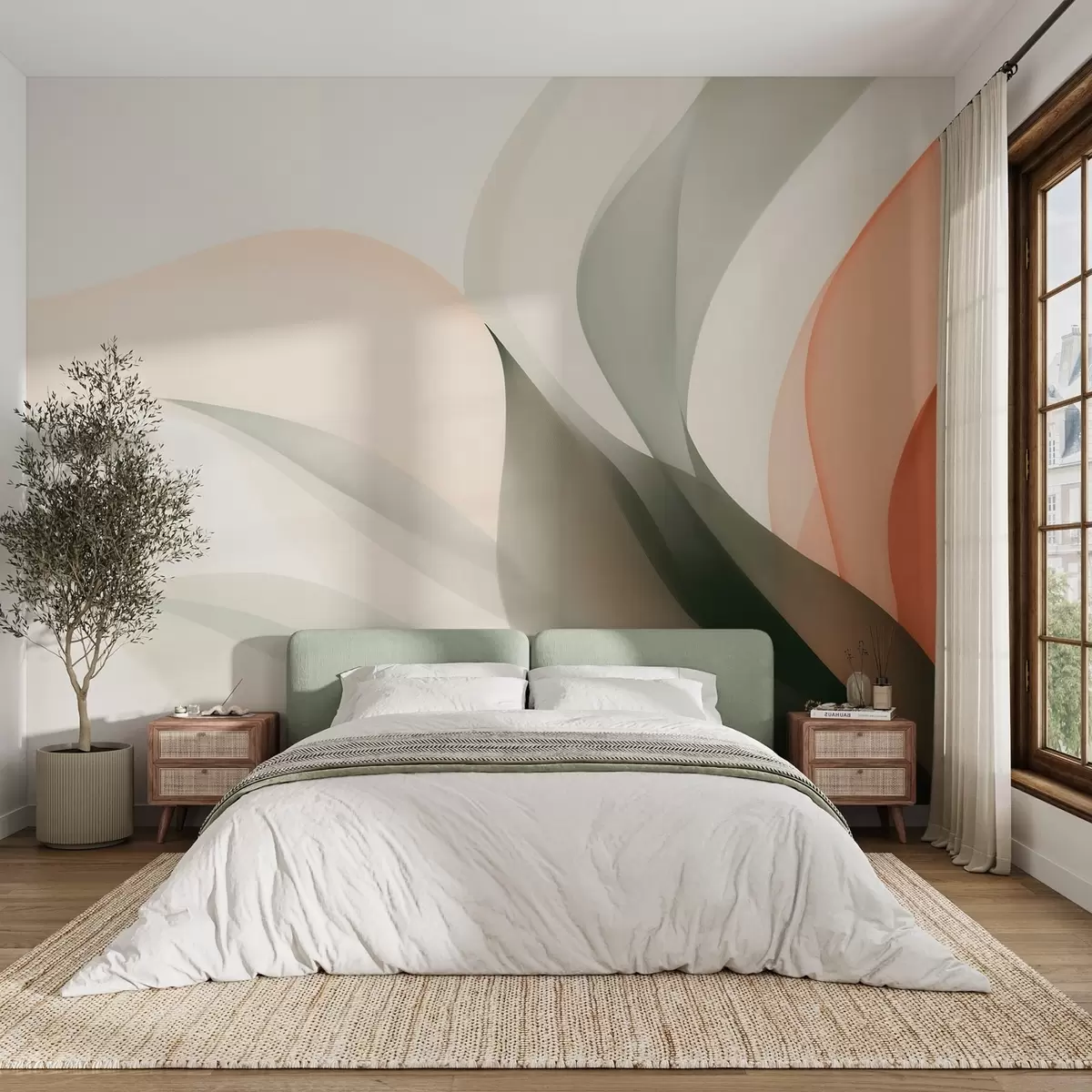 Fototapet Valuri abstracte în tonuri de portocaliu și verde Nr. w09718