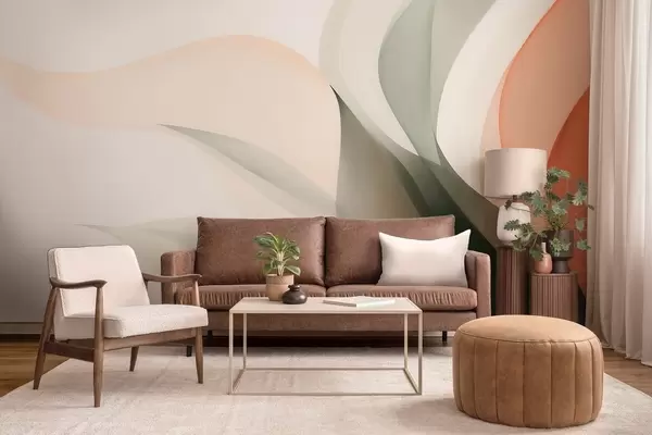 Fototapet Valuri abstracte în tonuri de portocaliu și verde Nr. w09718
