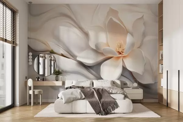 Fototapet Magnolie albă tridimensională cu imitație de textură de marmură în relief Nr. w09729