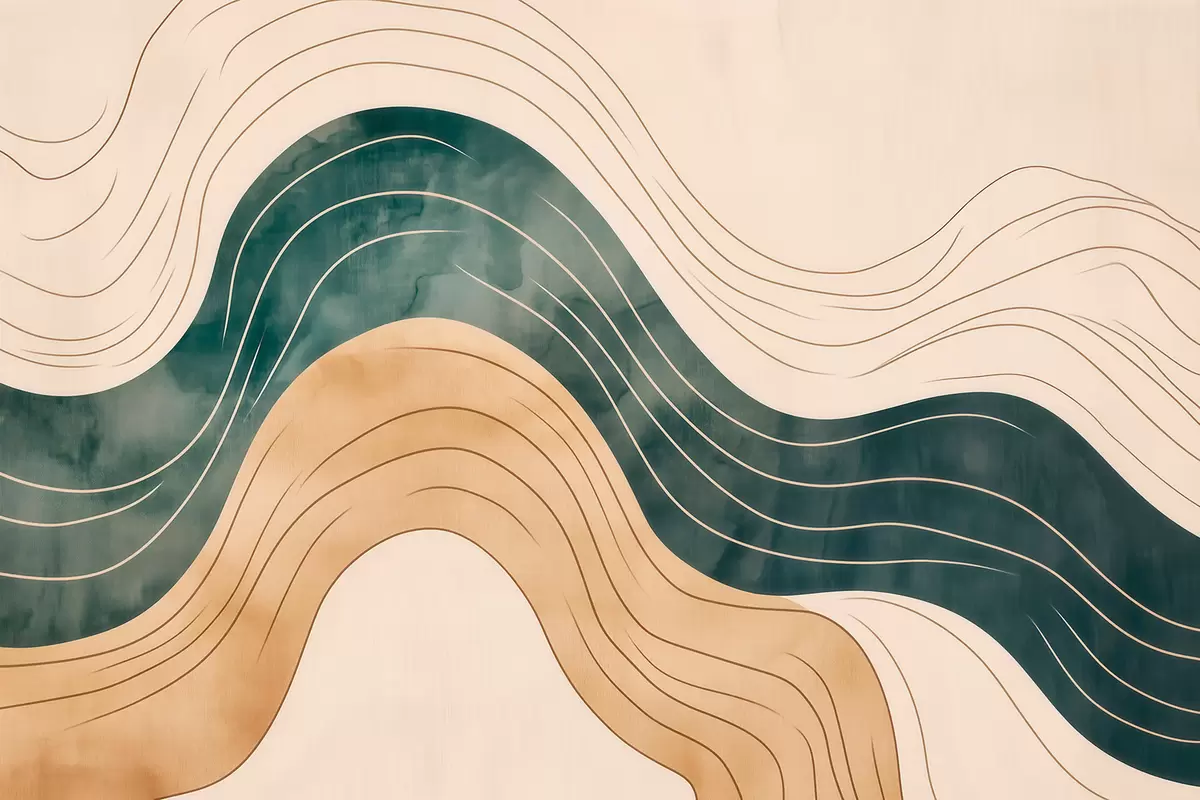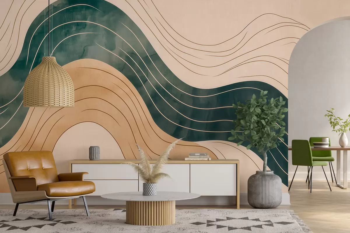 Fototapet Linii abstracte ondulate în nuanțe de nisip natural și smarald Nr. w09732