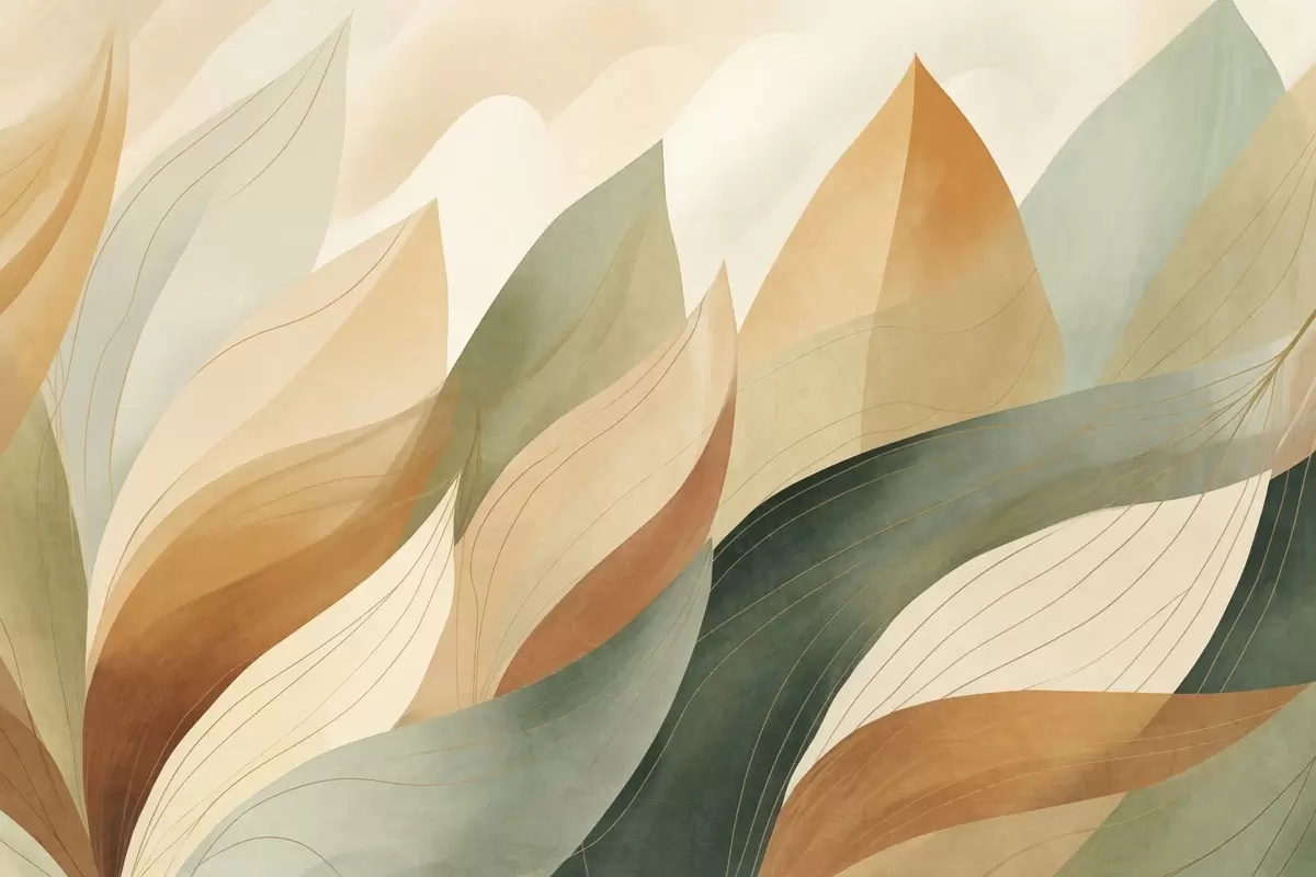 Fototapet Frunze abstracte, nuanțe discrete de verde și portocaliu cu detalii delicate, textură delicată de acuarelă Nr. w09736