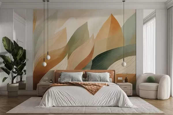 Fototapet Frunze abstracte, nuanțe discrete de verde și portocaliu cu detalii delicate, textură delicată de acuarelă Nr. w09736
