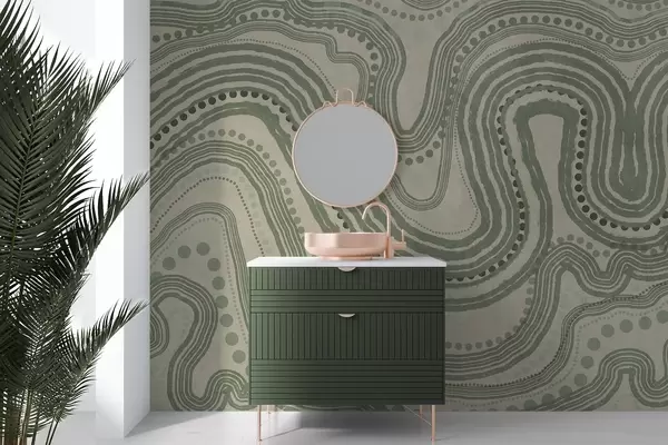 Fototapet Linii și puncte ondulate abstracte verzi și bej, artă modernă texturată Nr. w09747