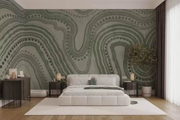 Fototapet Linii și puncte ondulate abstracte verzi și bej, artă modernă texturată Nr. w09747