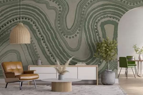 Fototapet Linii și puncte ondulate abstracte verzi și bej, artă modernă texturată Nr. w09747