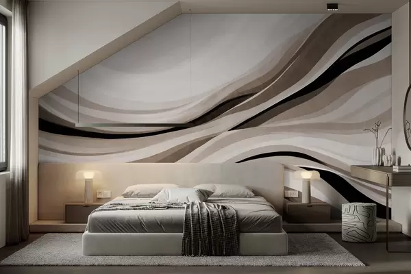 Fototapet Linii abstracte ondulate în nuanțe de bej și negru pe un fundal deschis, artă texturată Nr. w09748
