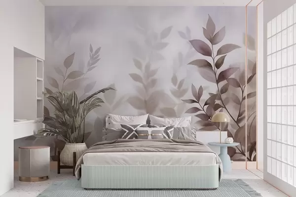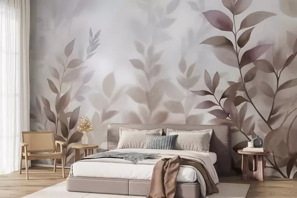 Fototapet Ramuri delicate cu frunze maro și bej discrete, stil pictură în acuarelă, artă texturată Nr. w09750