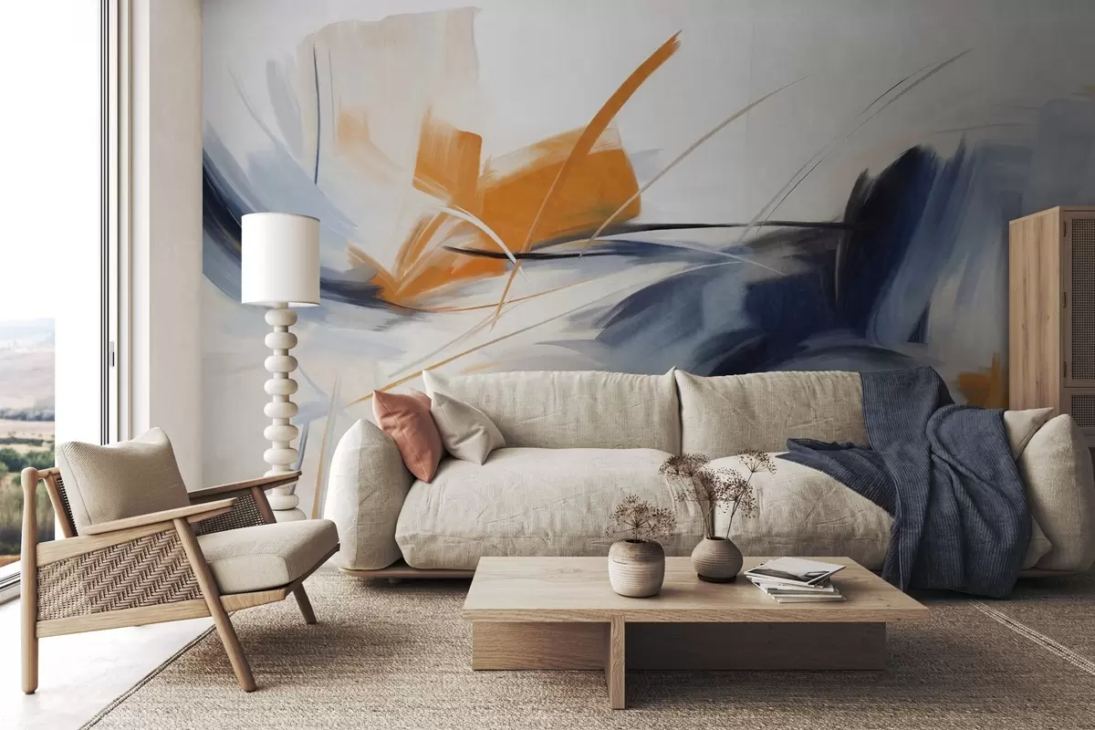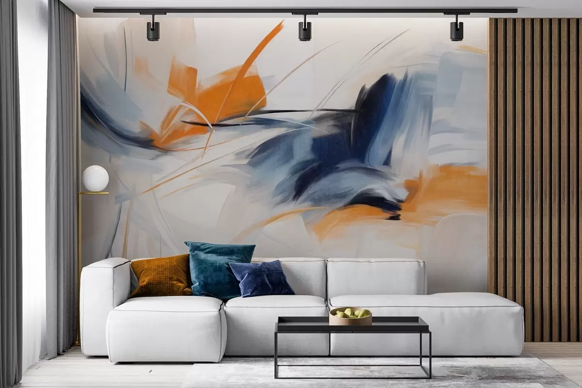 Fototapet Stil de pictură abstractă cu pensule texturate în culori portocaliu și albastru Nr. w09755