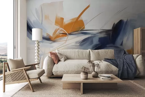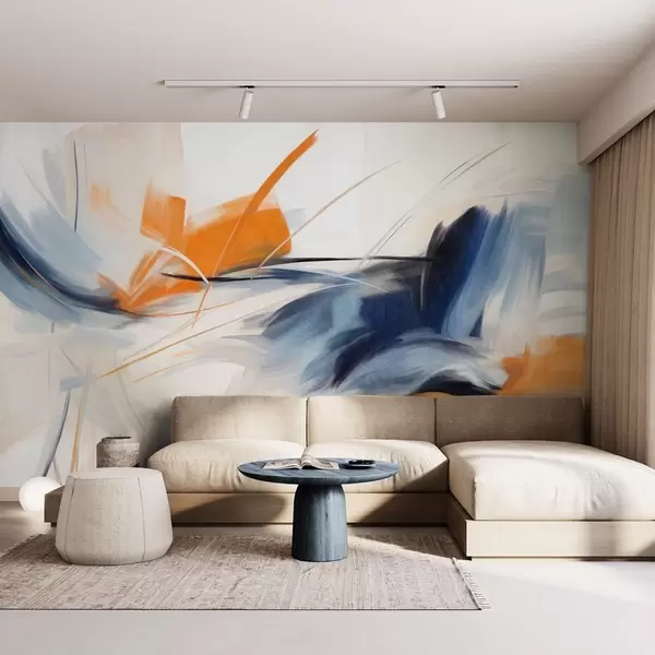 Fototapet Stil de pictură abstractă cu pensule texturate în culori portocaliu și albastru Nr. w09755
