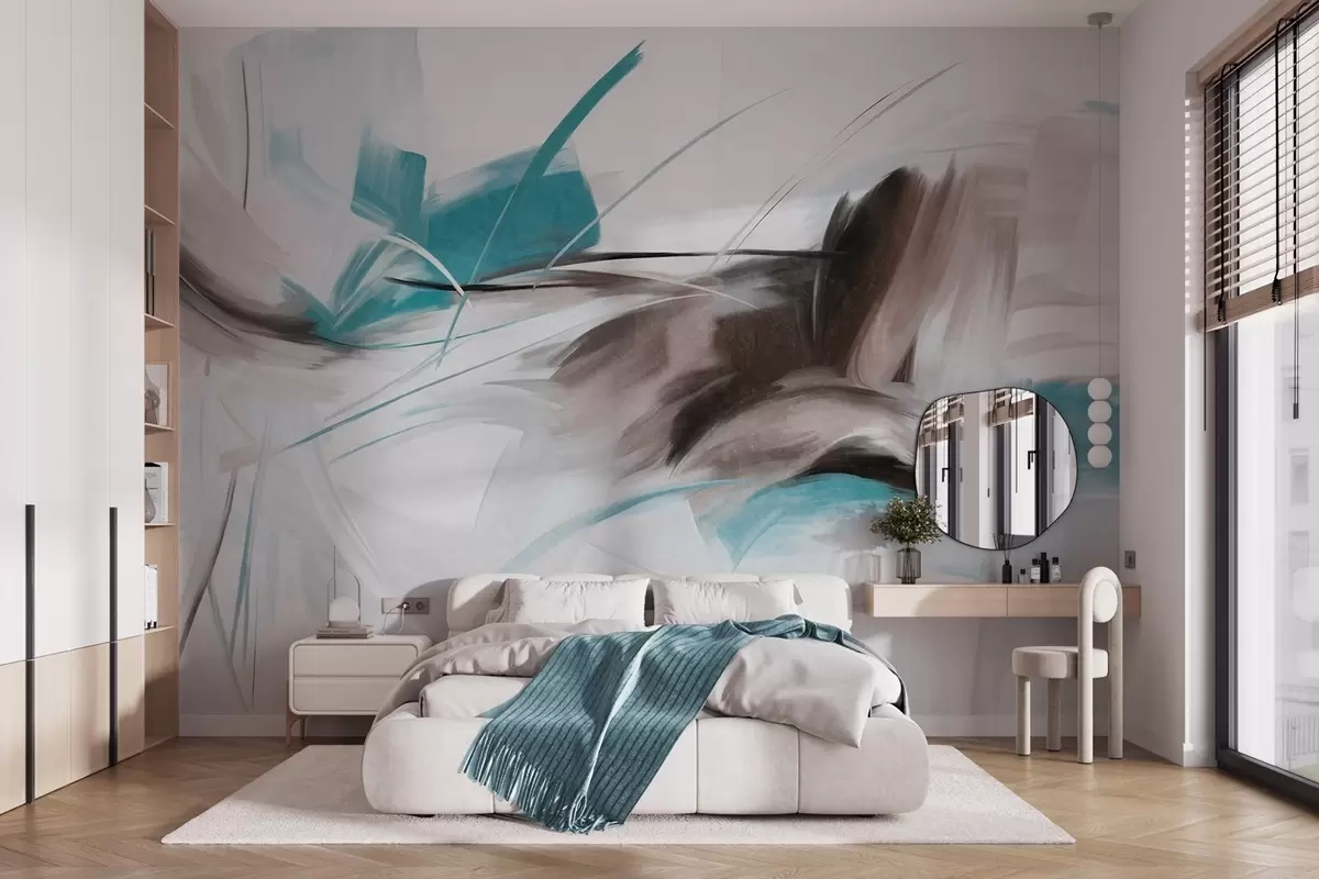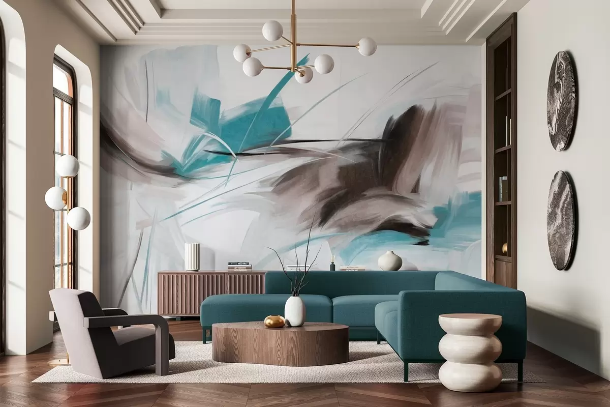Fototapet Stil de pictură abstractă cu pensule texturate maro și albastre Nr. w09755v1