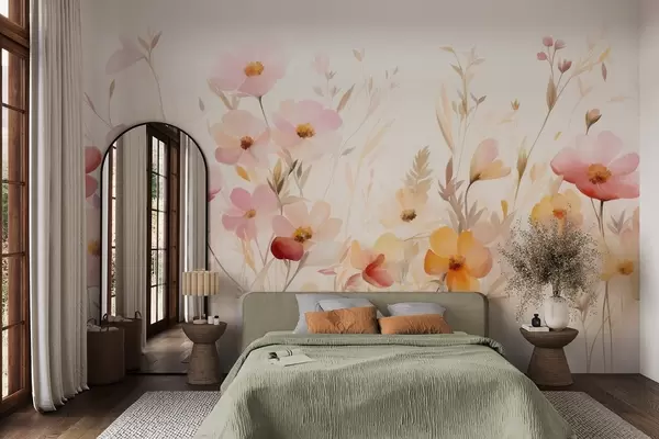Fototapet Câmp abstract de flori sălbatice în nuanțe pastelate, stil pictură în acuarelă Nr. w09757