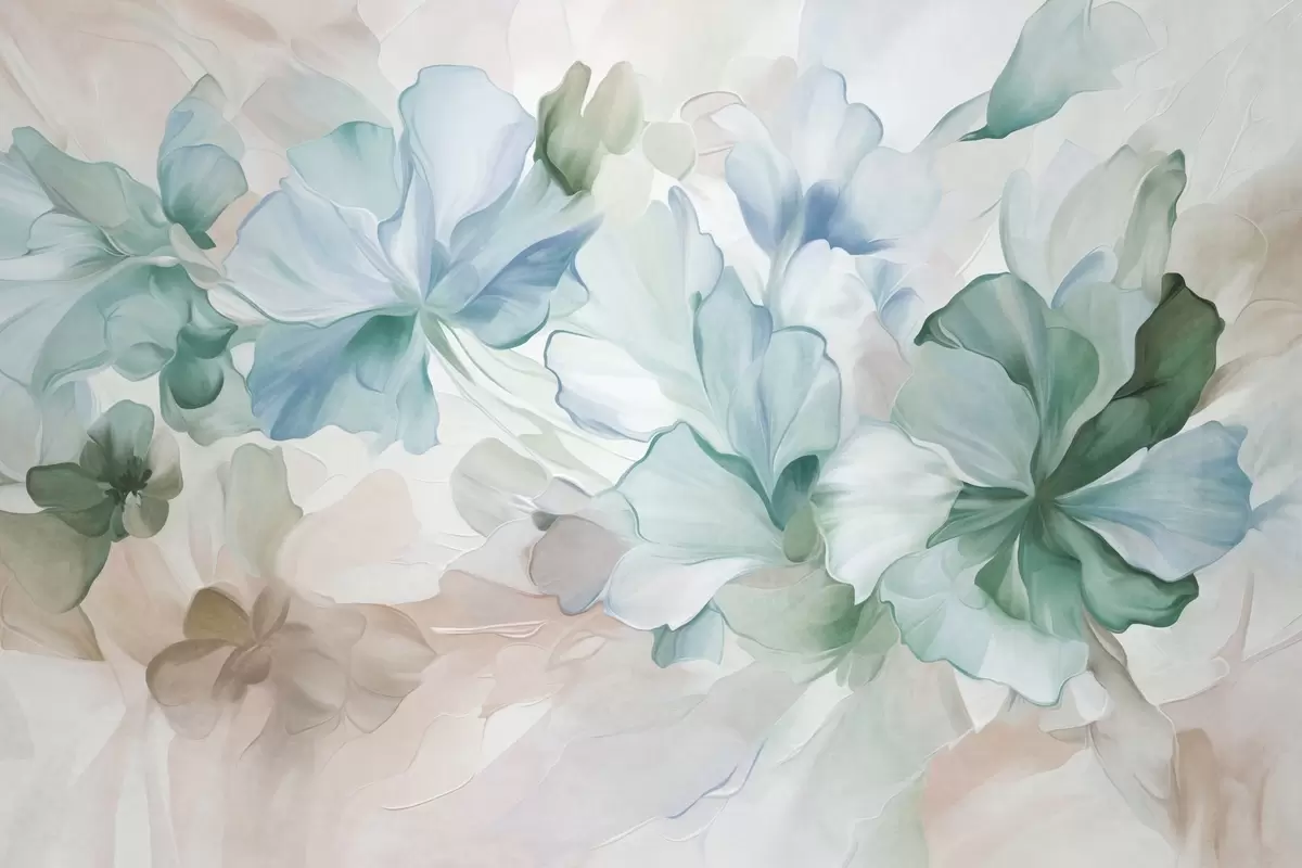 Fototapet Flori abstracte, fanteziste, în nuanțe de verde, albastru și bej, în stil pictural, artă texturată Nr. w09767v1