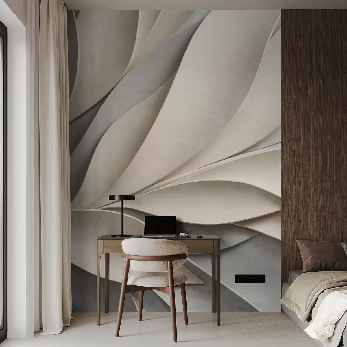 Fototapet Frunze abstracte în bej și gri, artă modernă texturată Nr. w09769