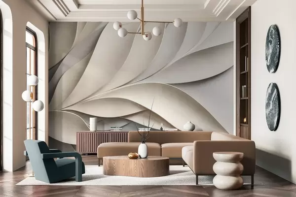 Fototapet Frunze abstracte în bej și gri, artă modernă texturată Nr. w09769