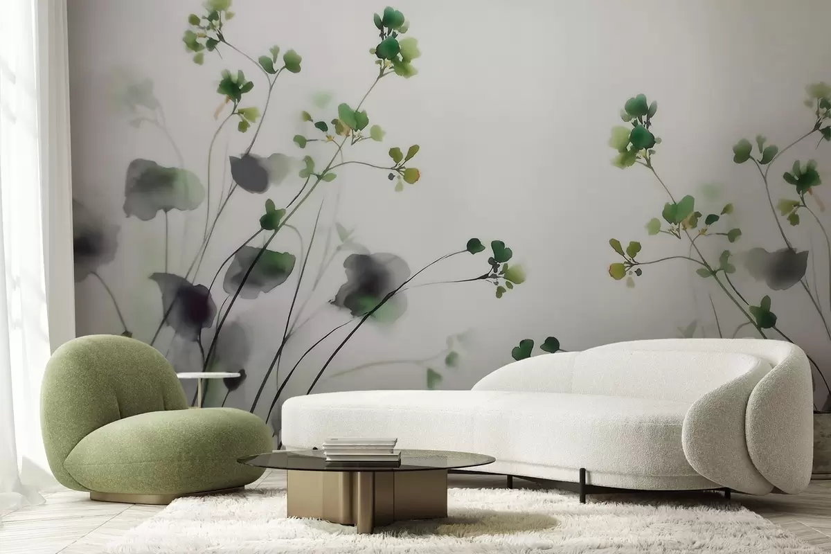Fototapet Flori sălbatice delicate și iarbă în stil acuarelă Nr. w09796
