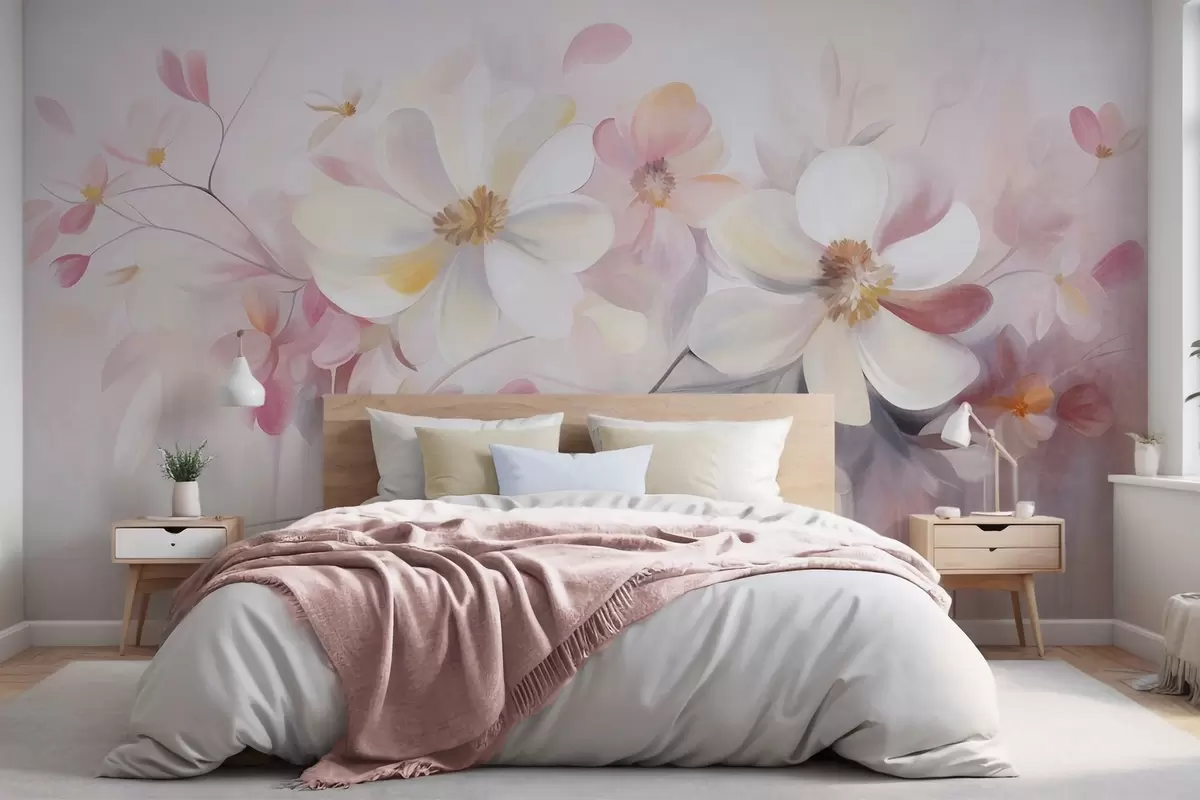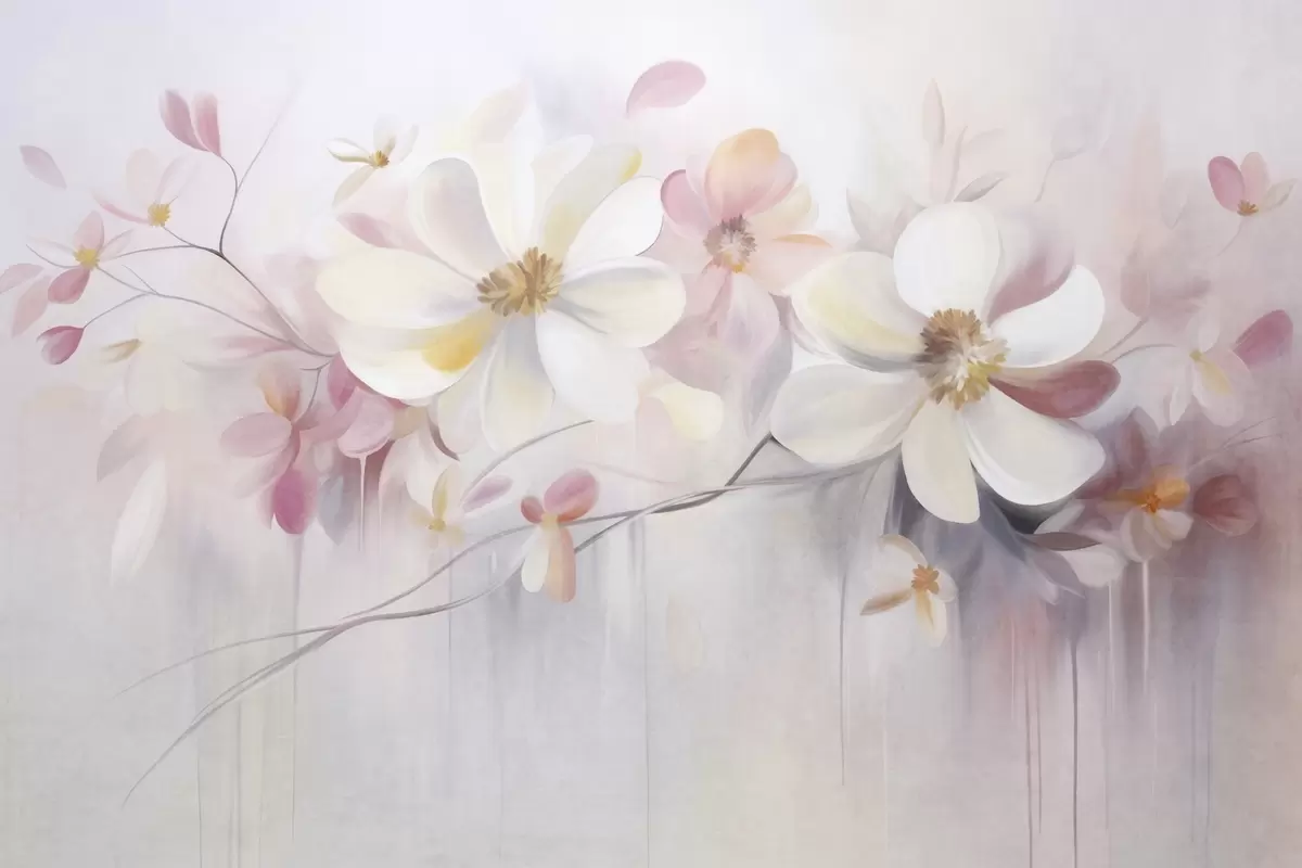 Fototapet Flori albe și roz cu petale delicate, texturate, pe un fundal abstract și delicat Nr. w09811