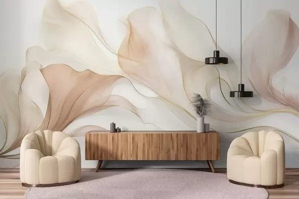 Fototapet Textură abstractă, fluidă, în nuanțe de piersică și crem, cu linii delicate Nr. w09815