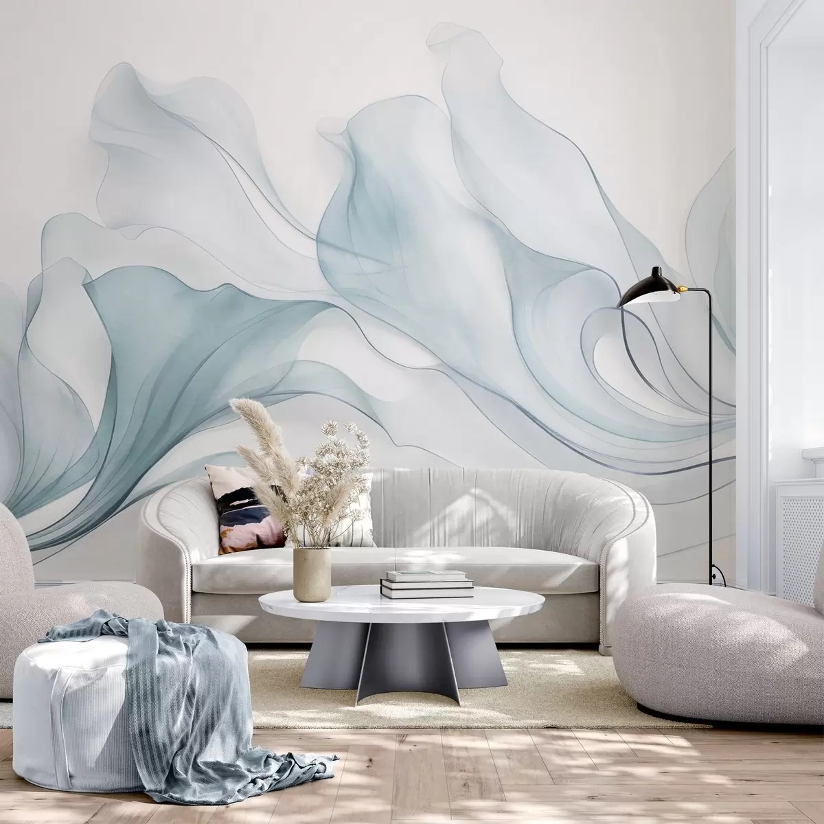Fototapet Textură abstractă, fluidă, în nuanțe de albastru, cu linii delicate Nr. w09815v1
