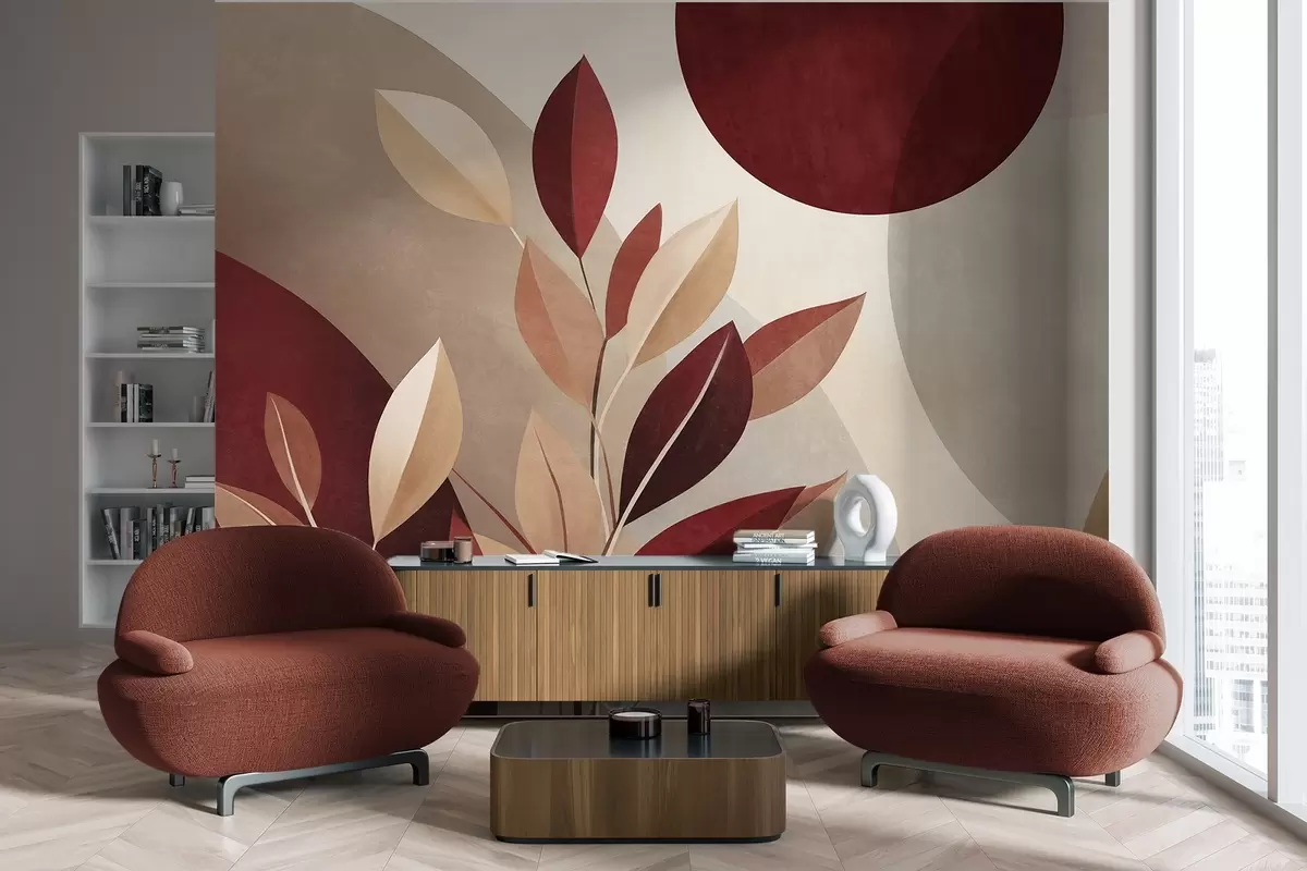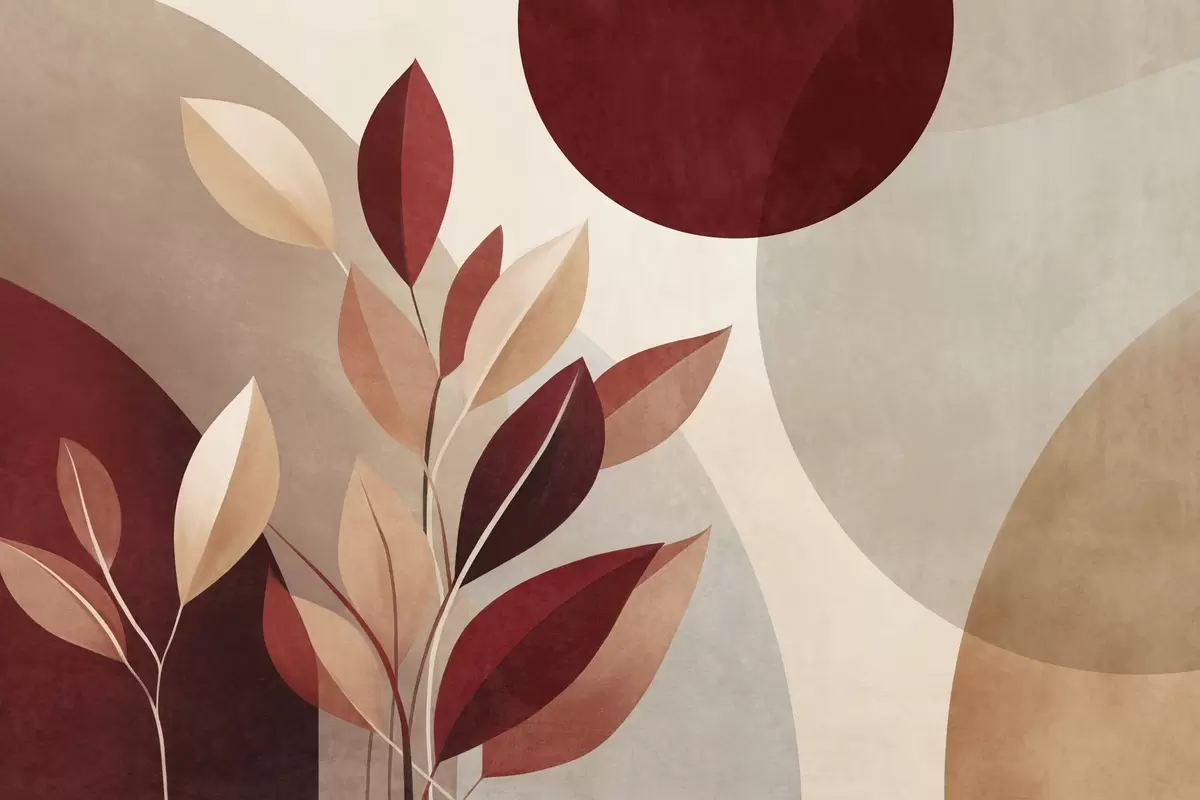 Fototapet Frunze texturate în nuanțe de bordo și bej pe un fundal de forme abstracte, minimalism, artă modernă Nr. w09829