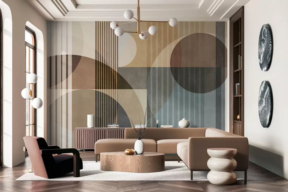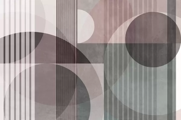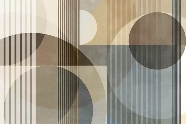 Fototapet Forme geometrice abstracte compuse din cercuri și linii, în nuanțe discrete de pământ, cu textură, într-o compoziție stratificată Nr. w09834