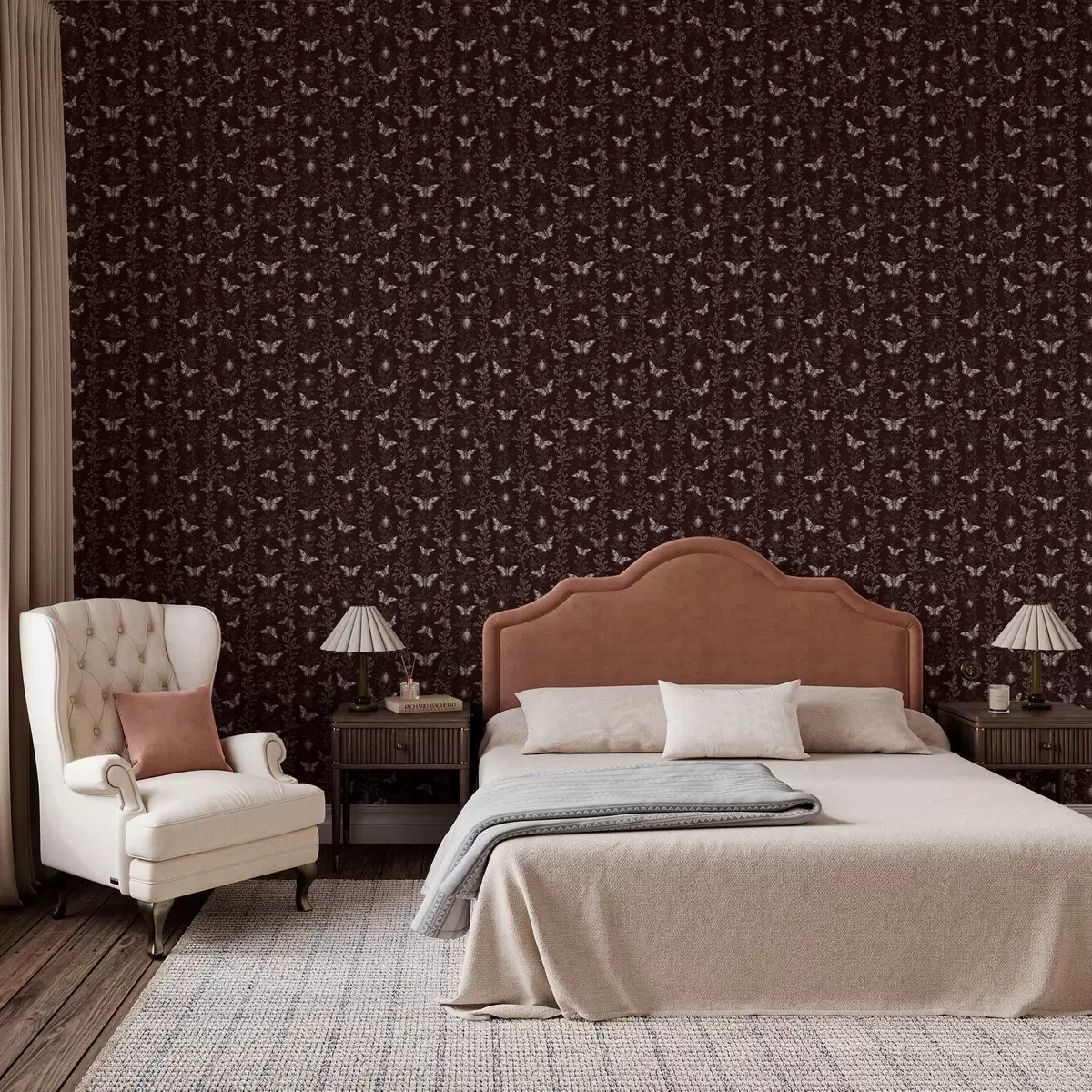 Tapet Compoziție cu fluturi, frunze și insecte pe fundal întunecat Nr. a00073v1