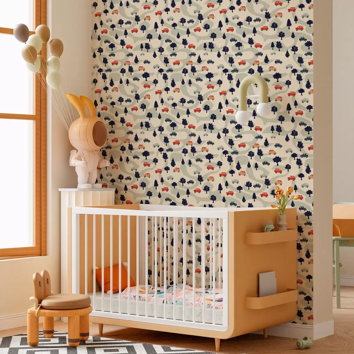 Tapet Funny masini printre copaci pe un fundal crem Nr. a00119