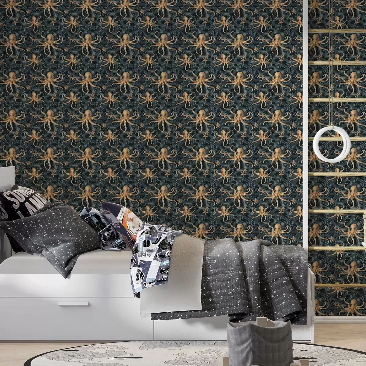 Tapet Octopus pe un fundal albastru închis Nr. a00120v1