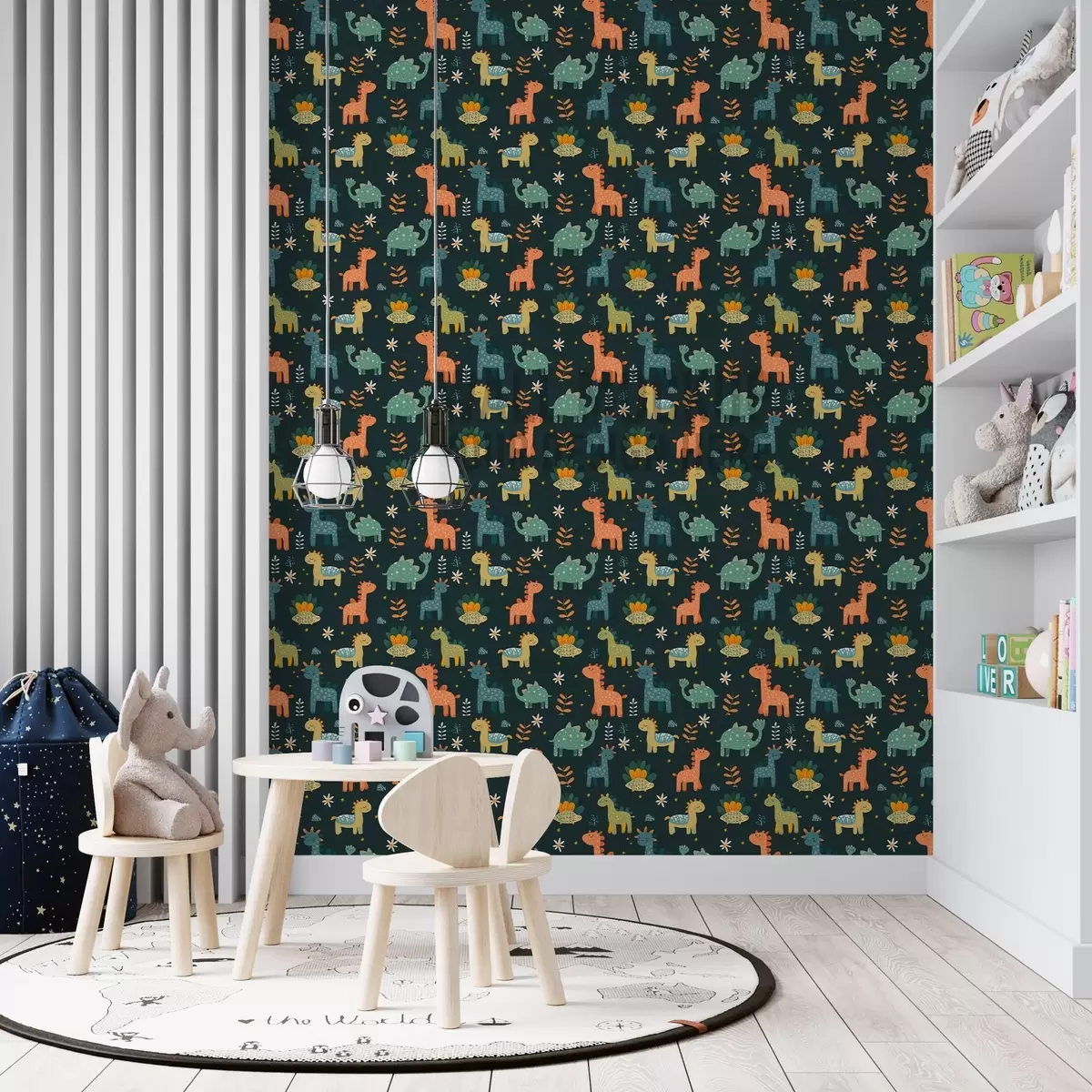 Tapet Dinozauri amuzanți în culori pastelate pe un fundal întunecat Nr. a00125v2