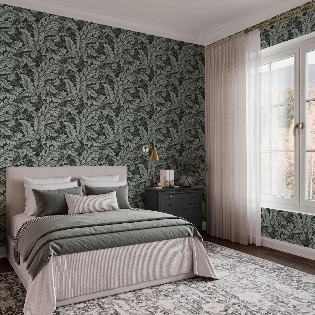 Wallpaper Fundal verde închis cu bucle de mentă a00135v4