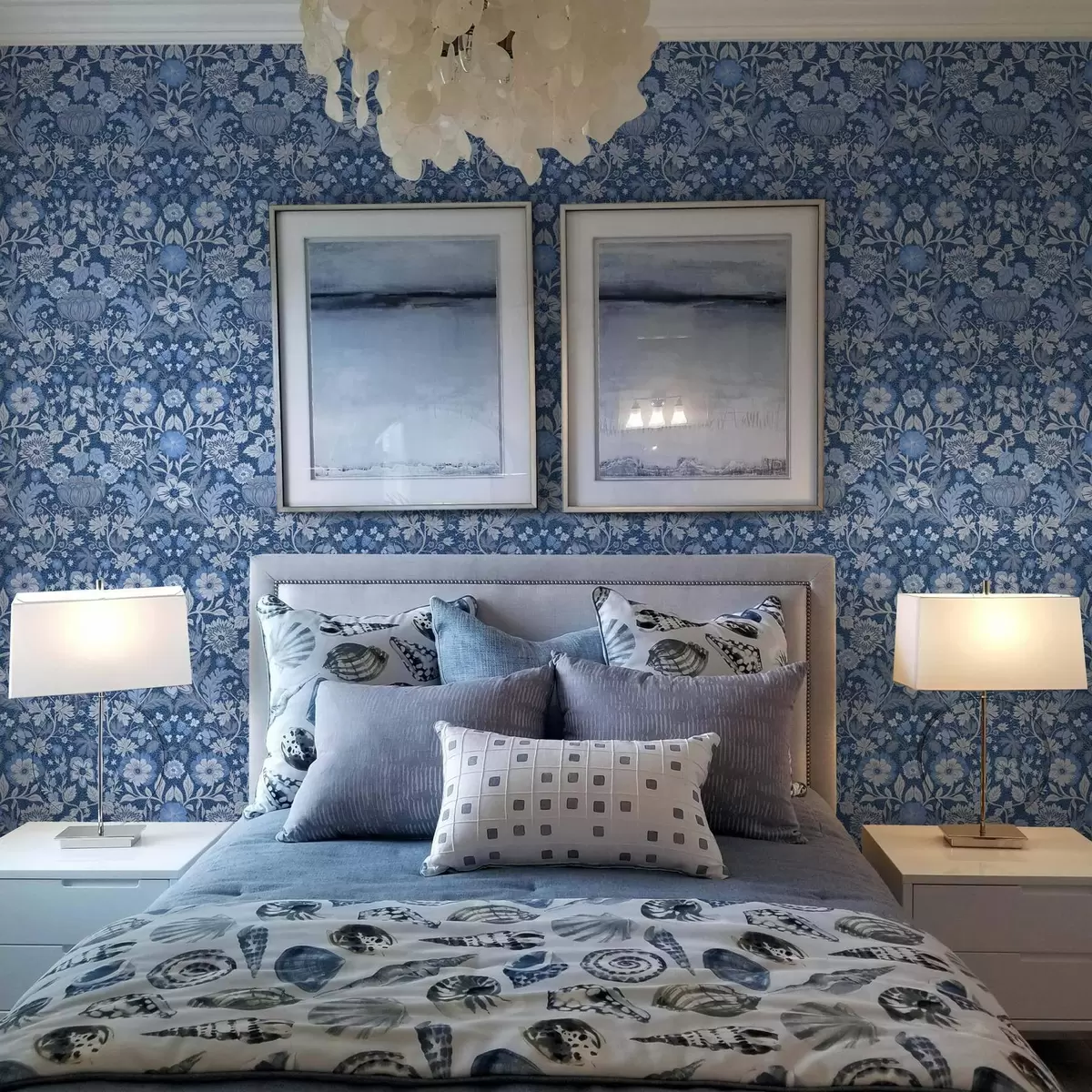 Tapet Imprimeu botanic albastru în stil vintage Nr. a00145v2