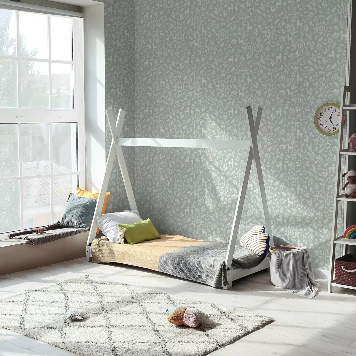 Tapet Animale și plante scandinave pe un fundal de mentă Nr. a00149