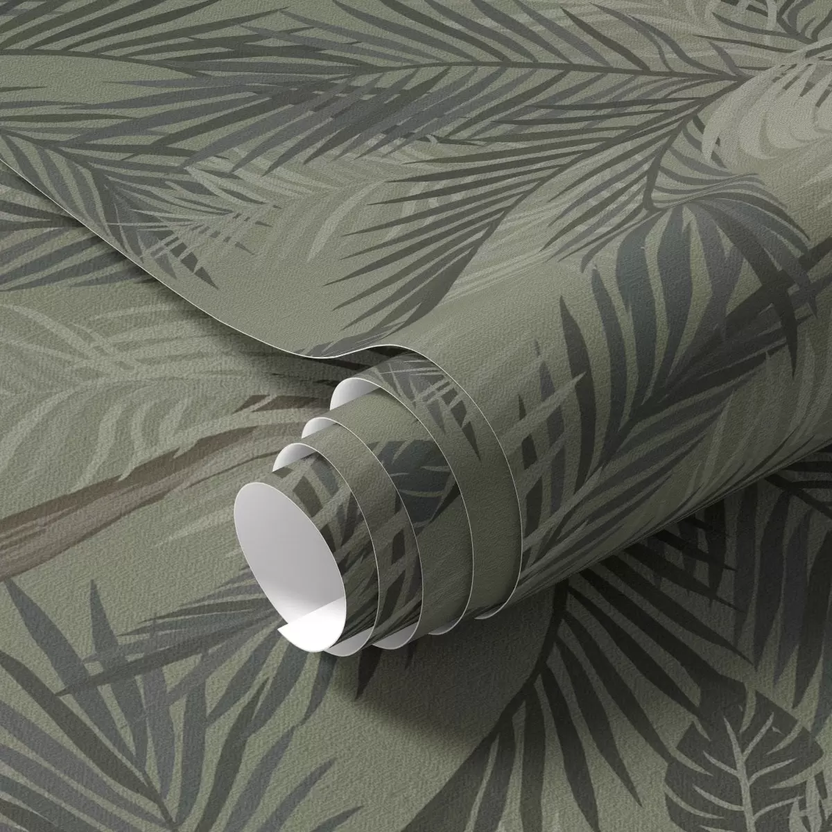 Tapet Frunze de palmier pe fundal de măsline, junglă, tropice Nr. a00217