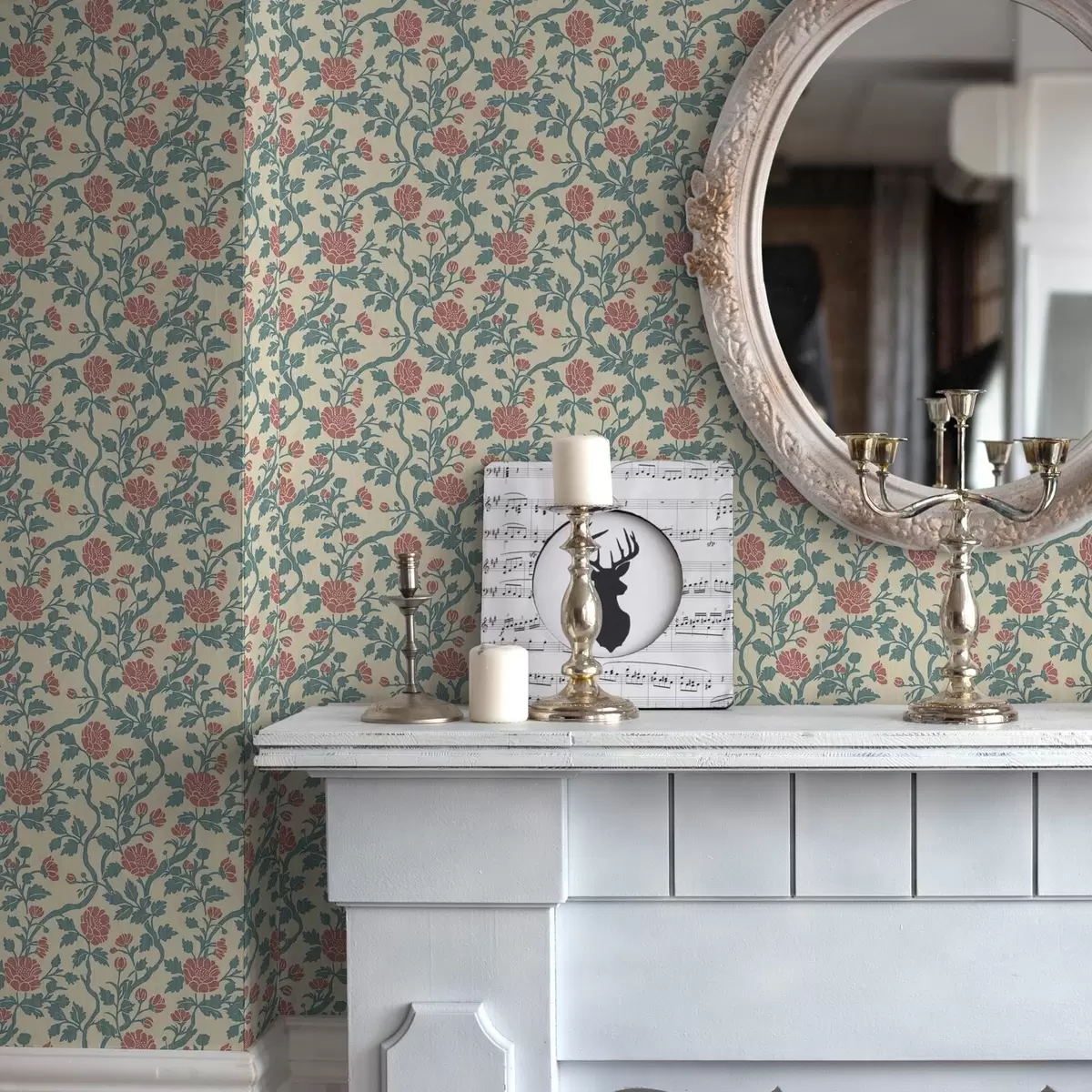 Tapet Model retro cu flori în roșu și verde Nr. a00250