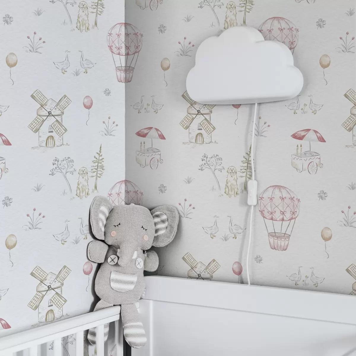 Tapet Ilustrații pentru copii: Câine, rațe, mingi, moară Nr. a00278