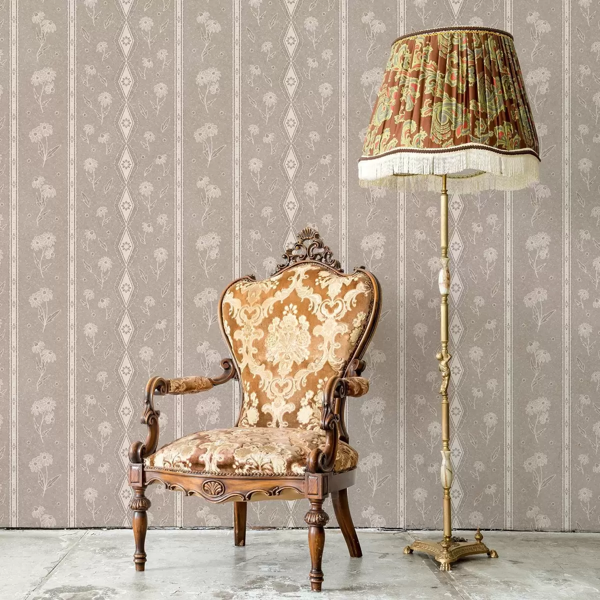 Tapet Dungi cu margarete și dantelă pe un fundal gri-bej Nr. a00295