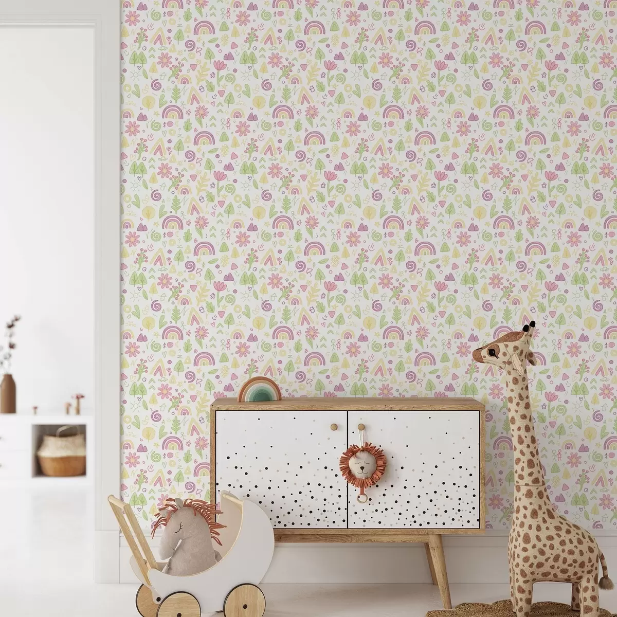 Tapet Desen pentru copii cu curcubee, flori și copaci Nr. a00296