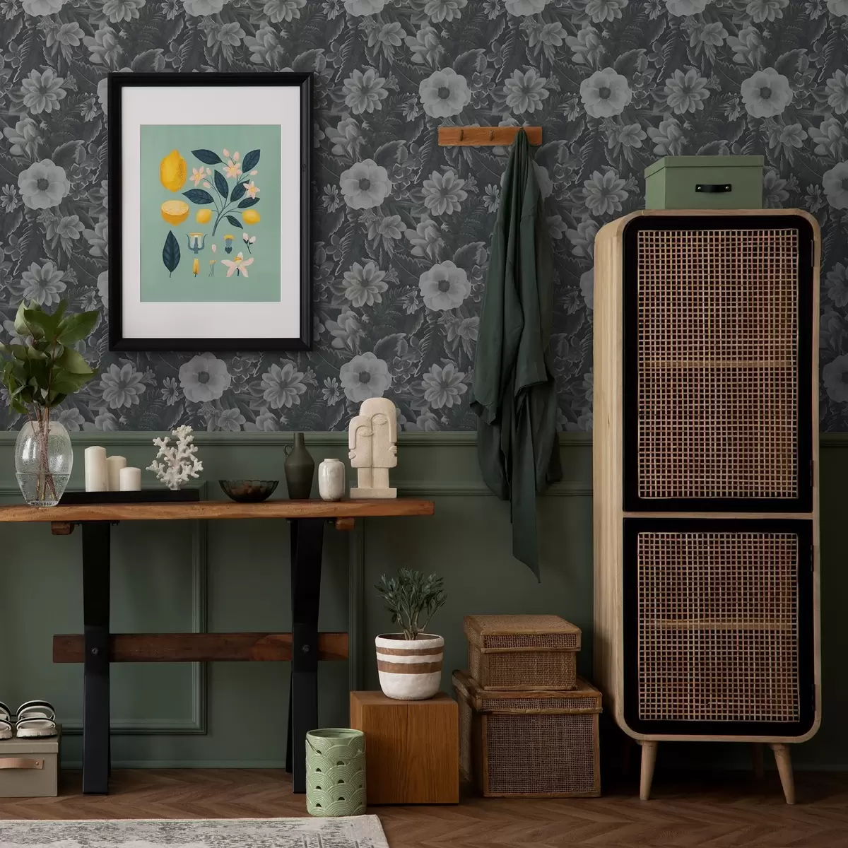 Tapet Model floral gri și alb cu efect retro Nr. a00307