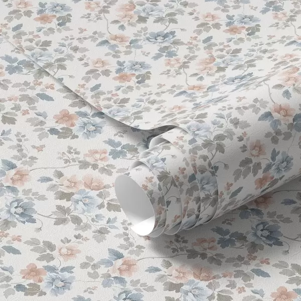 Tapet Ornament floral mic în tonuri de albastru și coral Nr. a00347