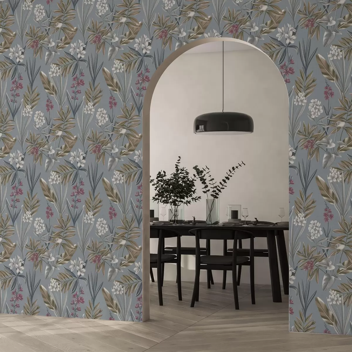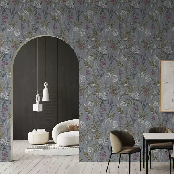 Tapet Ramuri florale pe un fundal albastru-cenușiu Nr. a00350