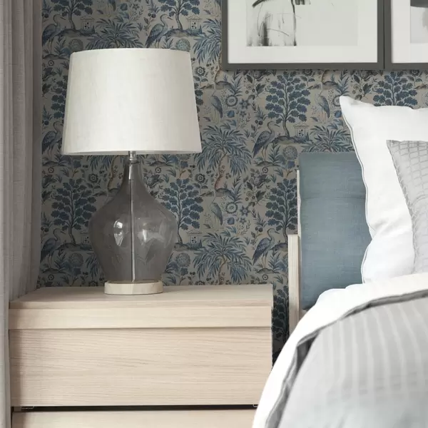 Tapet Toile de Jouy stil cu păsări albastre și copaci tropicali Nr. a00382