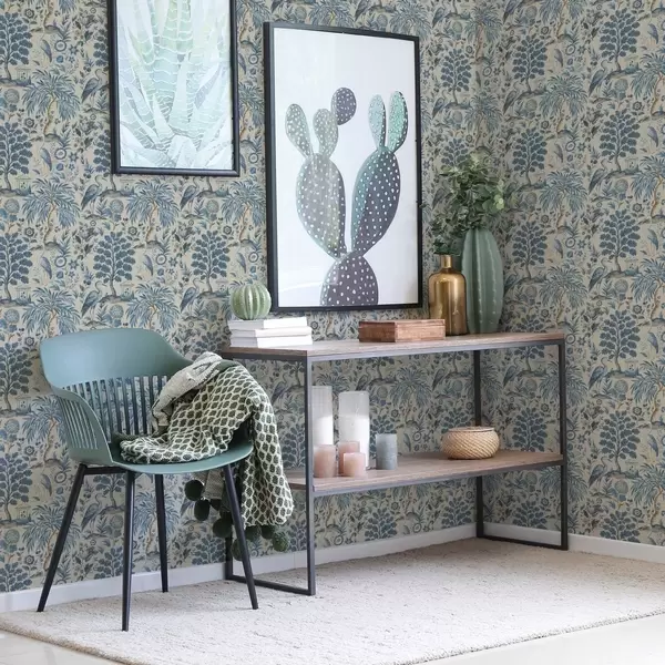 Wallpaper Toile de Jouy stil cu păsări albastre și copaci tropicali a00382
